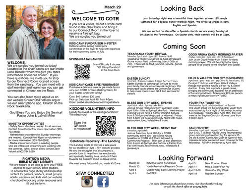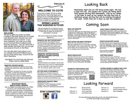 Here you can see a copy of our bulletin, which contains announcements, upcoming events, details about our Church... Really anything you need to know, it's here!